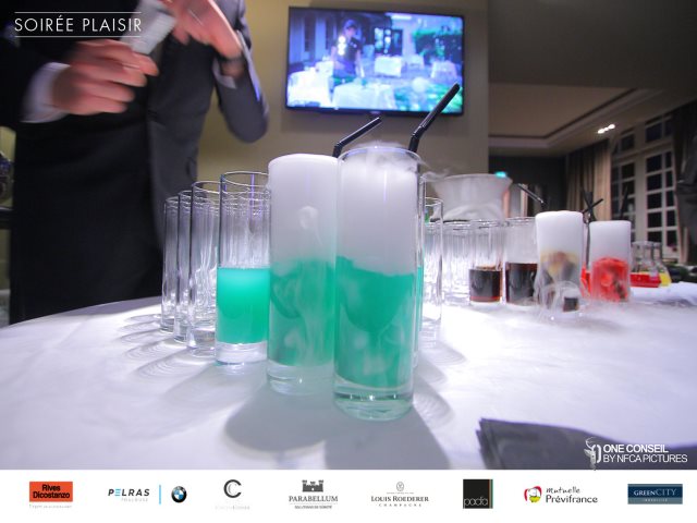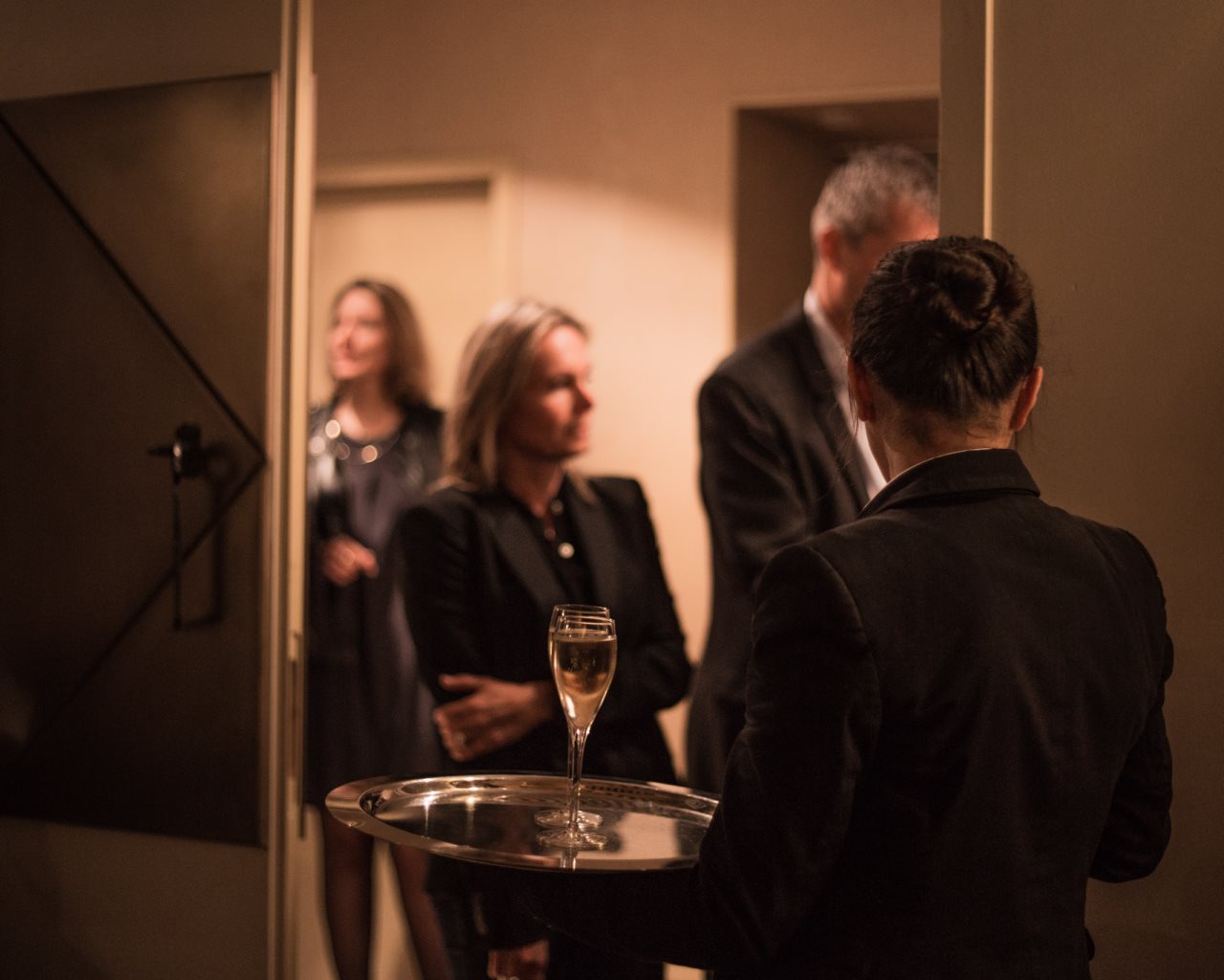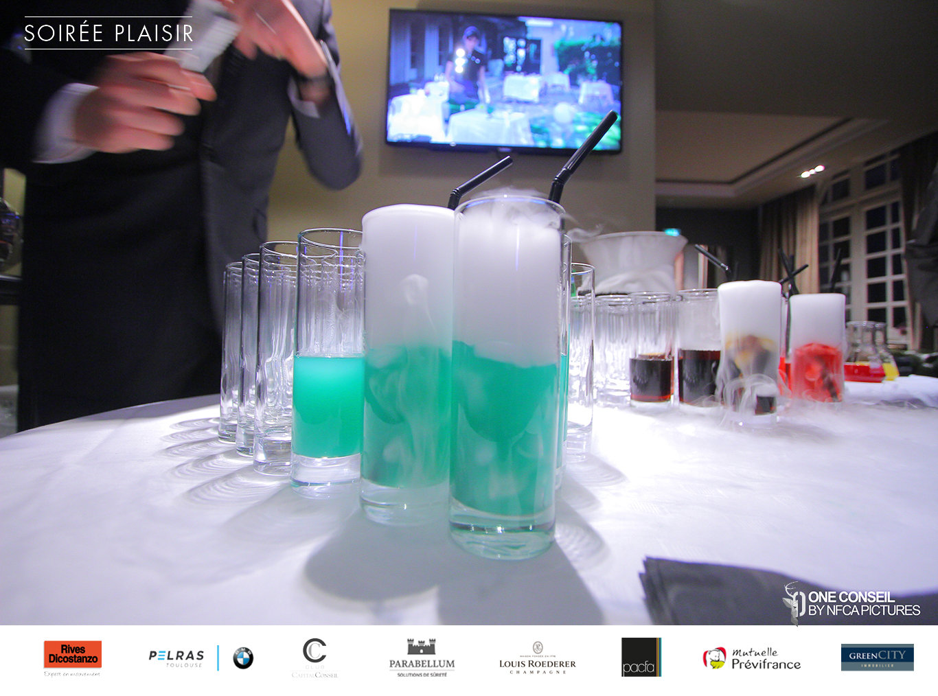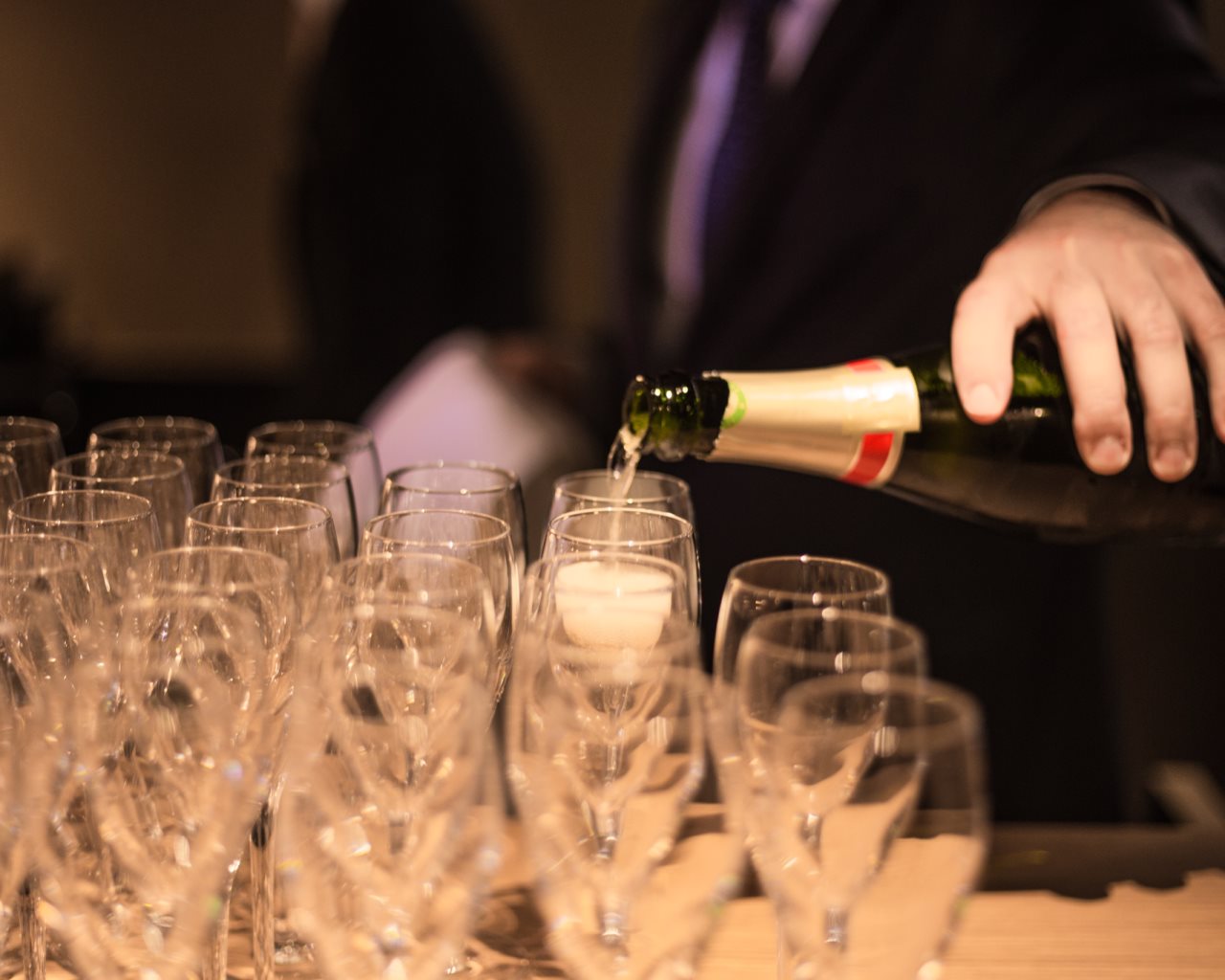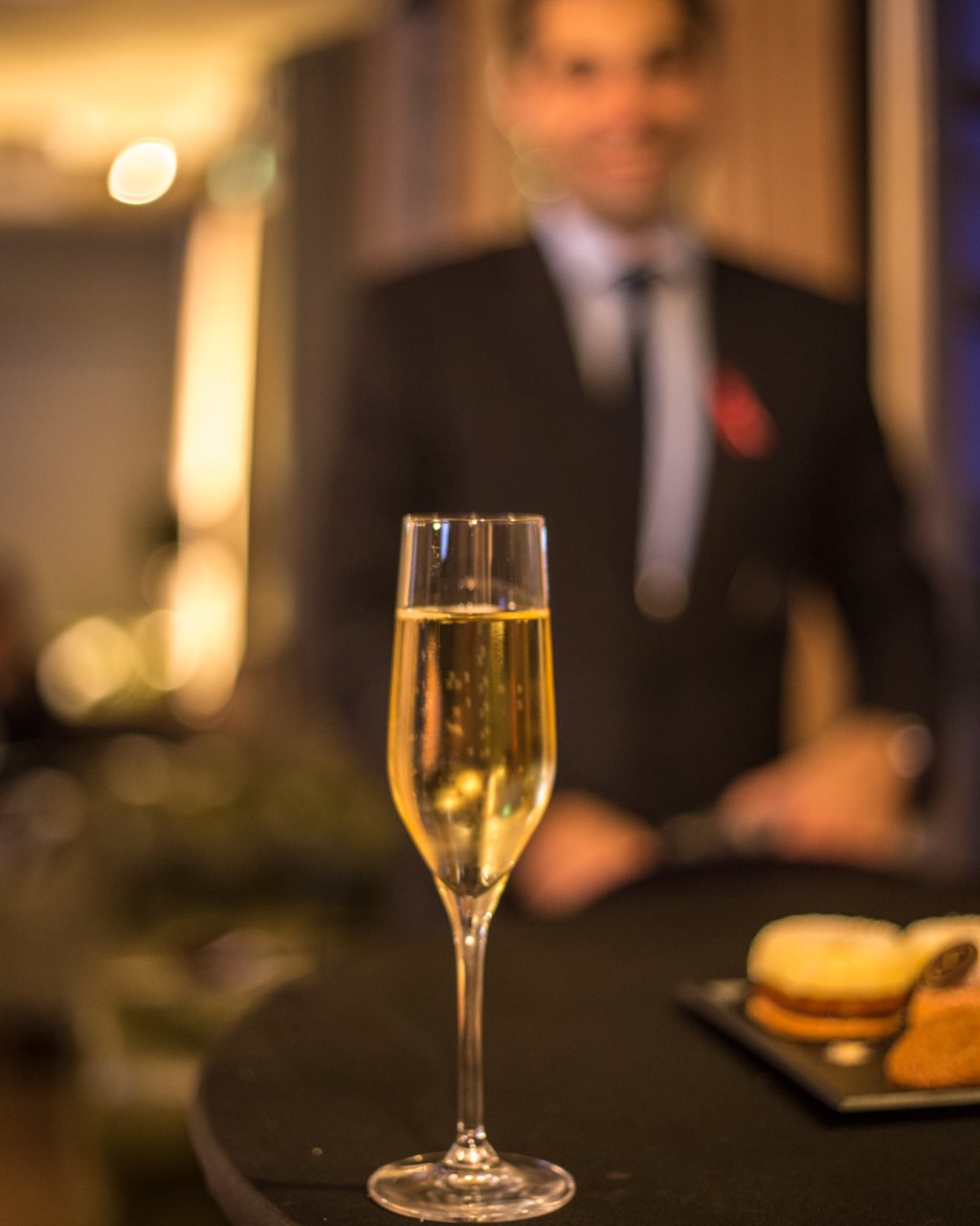 Prix de la soirée tout inclus (champagne, cocktails, vins, softs, eaux minérales, cocktail dînatoire et live musique)