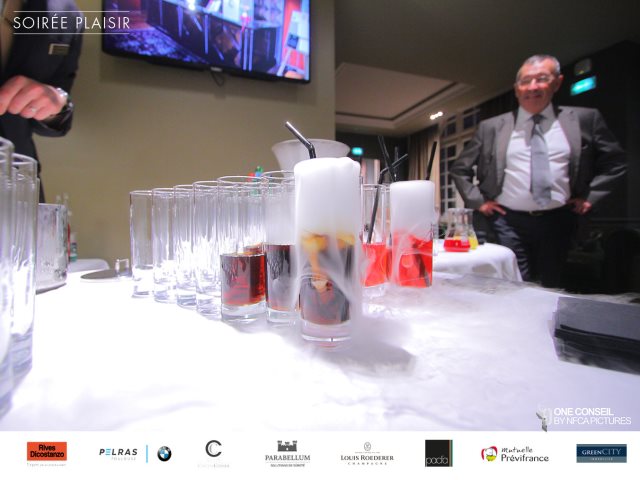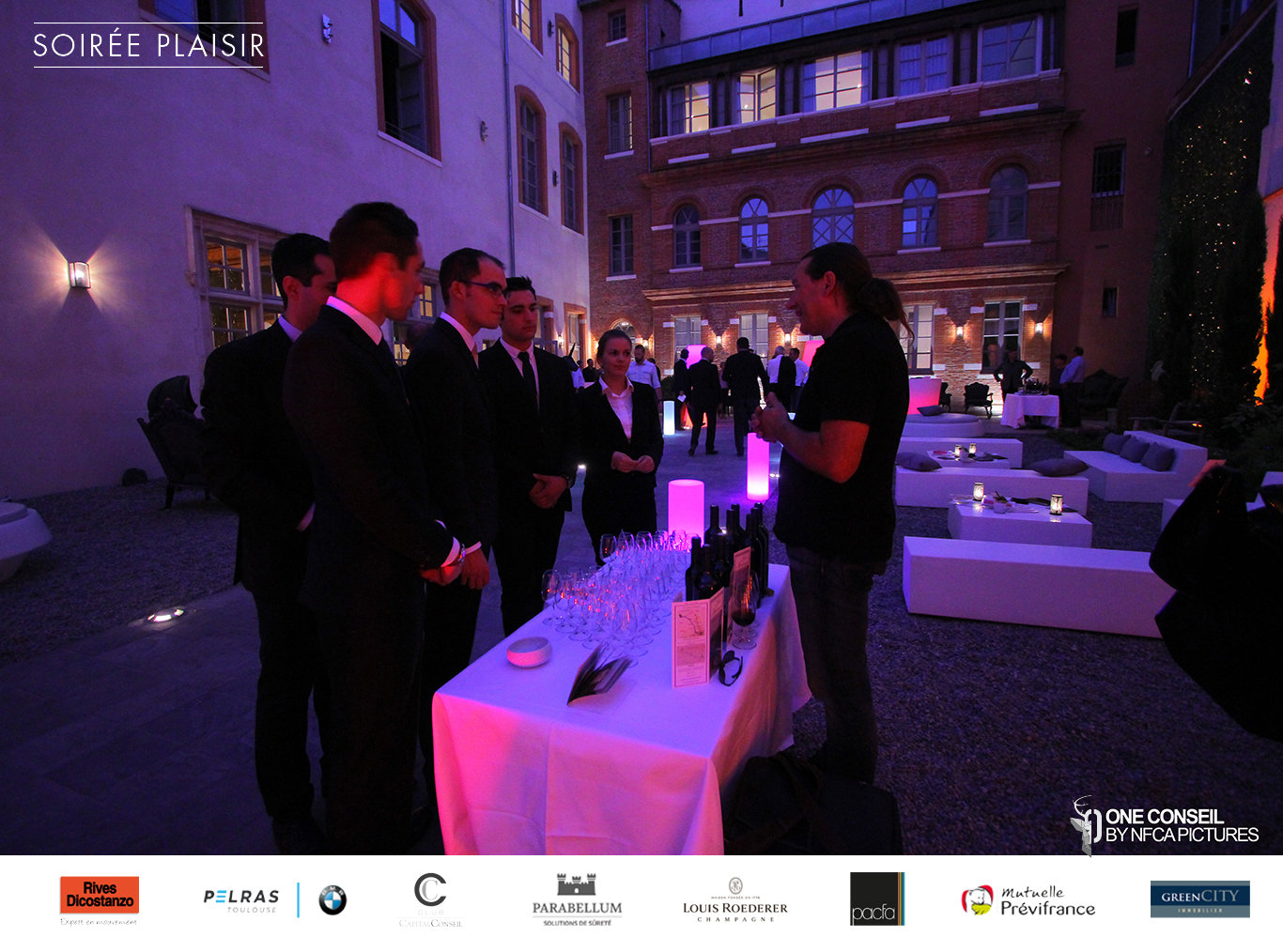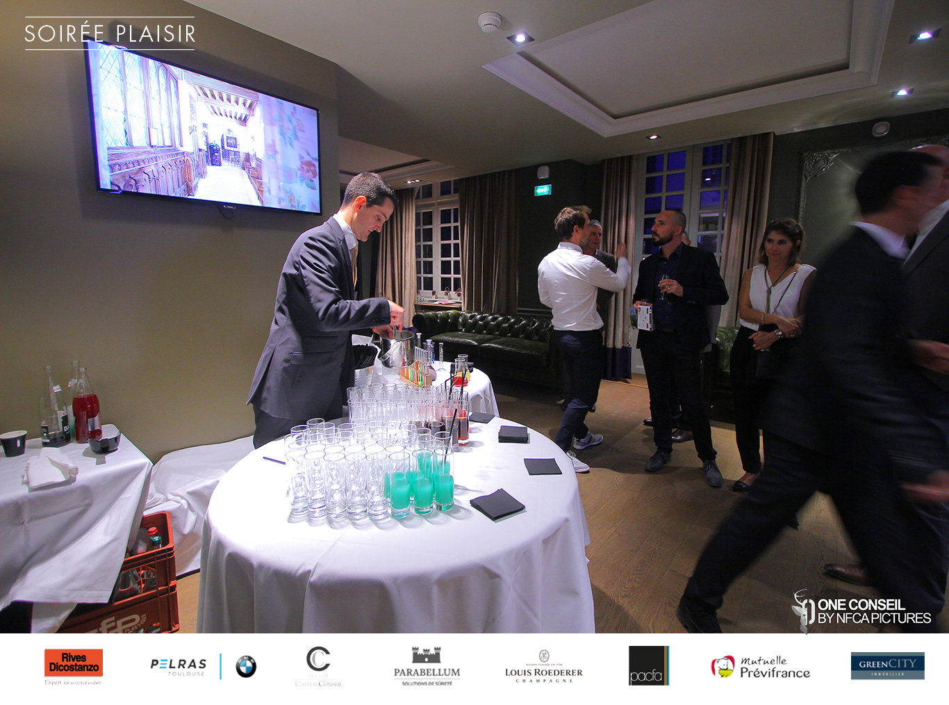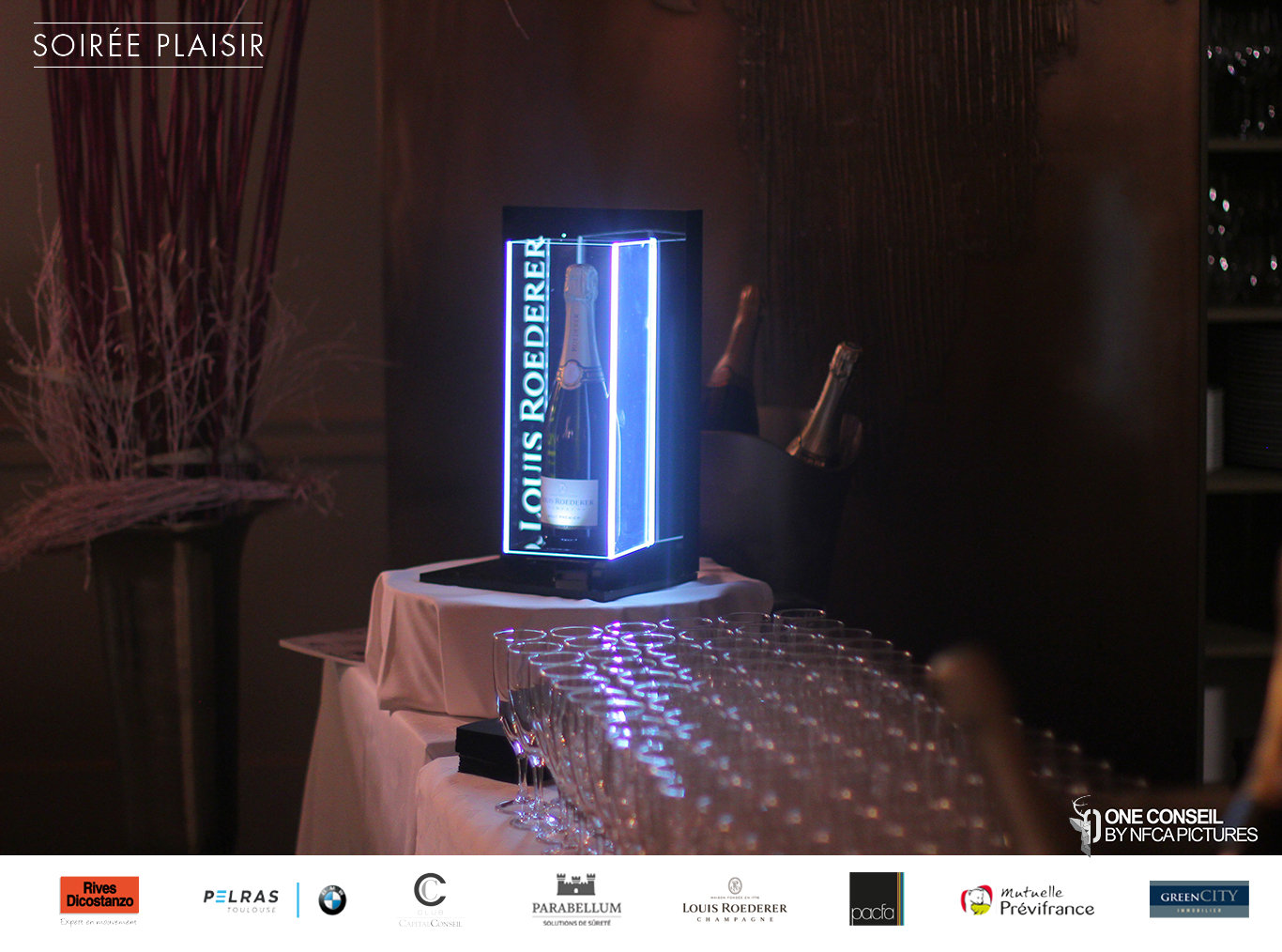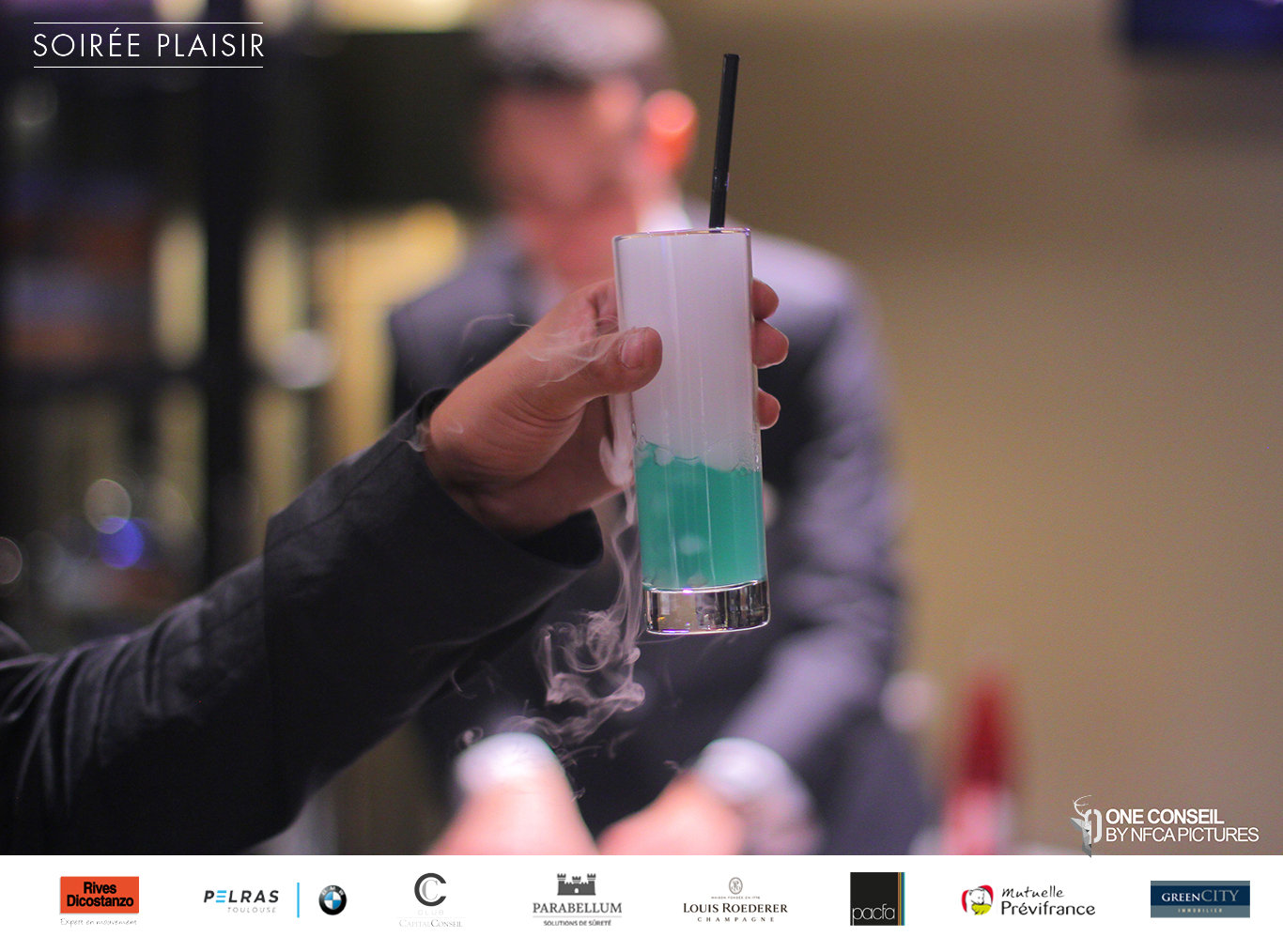 Prix de la soirée tout inclus (champagne, cocktails, vins, softs, eaux minérales, cocktail dînatoire et live musique)