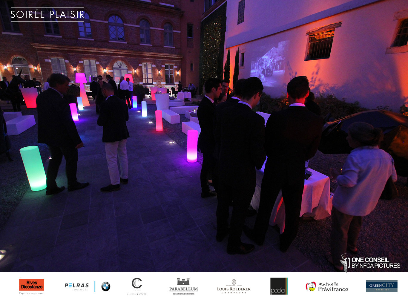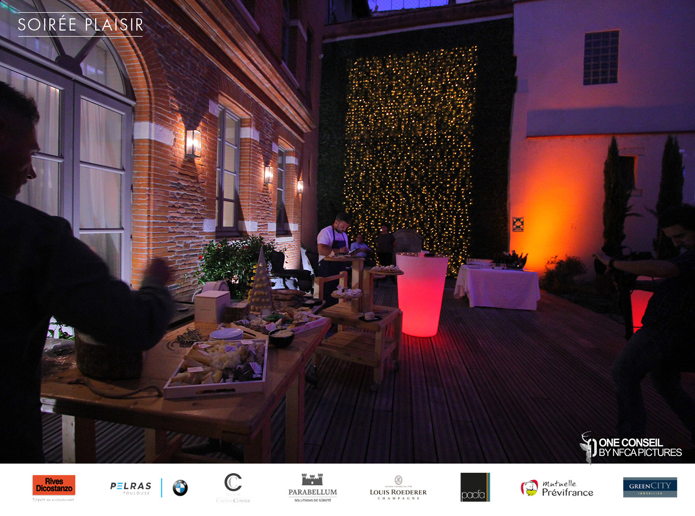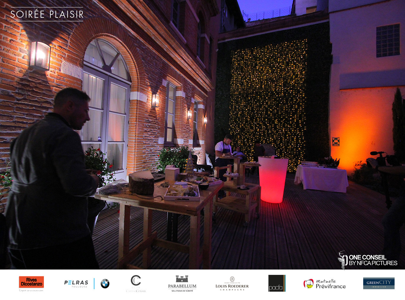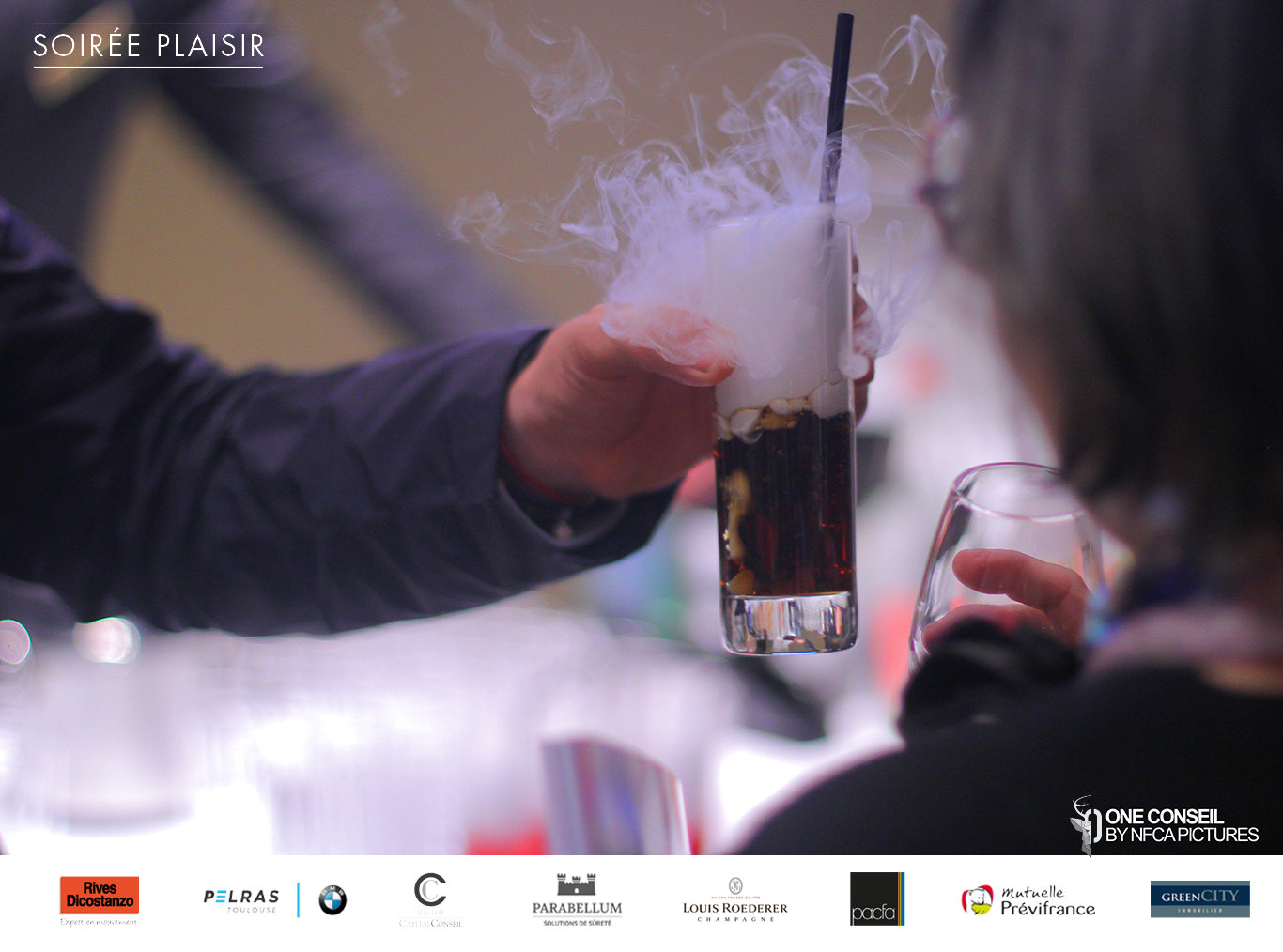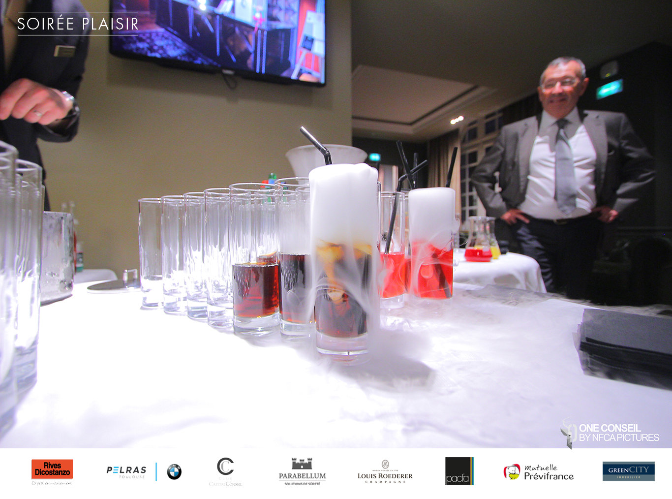 Prix de la soirée tout inclus (champagne, cocktails, vins, softs, eaux minérales, cocktail dînatoire et live musique)